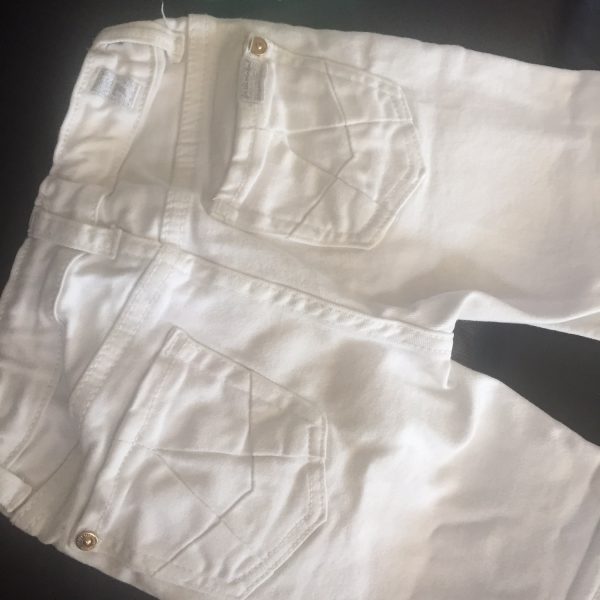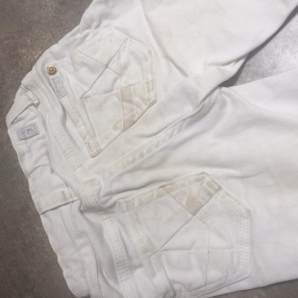 My youngest daughter received an adorable pair of 7 for All Mankind designer shorts. The problem is, they are WHITE and she’s 6. She wore them clam digging with her grandpa and they come home brown and sandy. Unfortunately I didn’t get before and after photos but I was able to get them amazingly white again. Until the next time she wore them. To the ballpark. This time she got dirt on the bottom and I didn’t remember to pretreat. Instead, the shorts were washed and dried and came out like this: