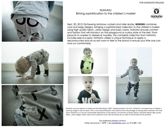 NUNUNU is a children's brand that brings sophistication to the playground. High quality fabric is combined with urban designs and basic colors to create a line of children's clothing including onesies, dresses, hoodies, tees, playsuits and more for ages 0-6. The Winter 2012 line features letters, skulls and stars amongst other designs in grey, black, white, green and pale pink. My personal … [Read more...]