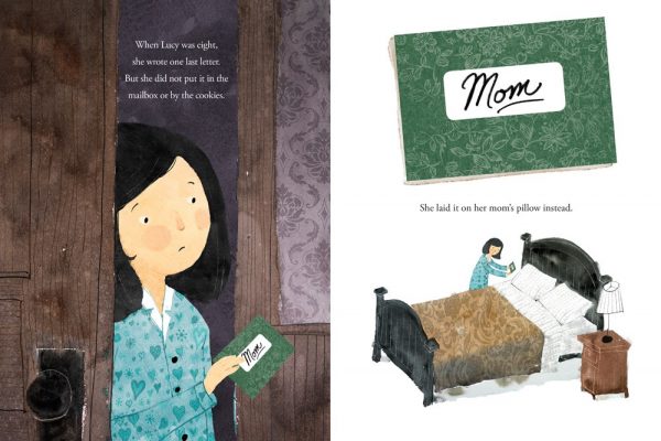 The book is about a little girl and her annual letter to Santa. The pages are beautifully illustrated and the letters are tucked away in actual envelopes so you can pull them out and read them. One year, instead of writing to Santa, Lucy writes a letter to her mom instead, asking if she was Santa.
