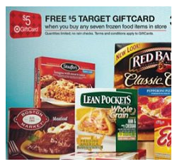 This week, get a $5 Target gift card when you buy ANY 7 frozen food items including veggies that are only $0.97! Your transaction would be similar to this: