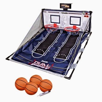 Grab a friend and shoot away with the Franklin Electronic Hoops To Go Dual Hoop Set. The dual hoop design features authentic style basketball rims and electronic scoring and sounds. Height adjustable door attachment fits most doors. The INSTA-SET design features a suspended ball return that gets the ball quickly back to you for your next shot. Includes 4 basketballs and an inflation pump. Here some of the cool features.